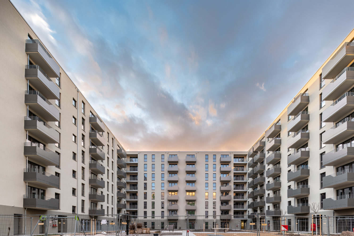 Die Gebäude zeichnen sich durch eine ausgesprochen kompakte Gestalt aus, die zu einer hohen Energieeffizienz führt (Energieeffizienzklasse gemäß KfW-55-Standard). Eine wirksame Wärmedämmung sowie die Versorgung mit Fernwärme sind nicht nur wichtige Beiträge zum Klimaschutz, sondern sie sorgen auch für niedrige Heiz- und Warmwasserkosten, was den Mietern zugutekommt. Auf den Dachflächen wurde eine Photovoltaikanlage zur emissionsfreien Stromerzeugung errichtet.
